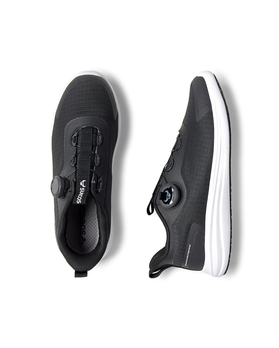 Το μεγαλύτερο πλεονέκτημα των Hast Suecos είναι το καινοτόμο σύστημα Spin-On™, το οποίο αντικαθιστά τα παραδοσιακά κορδόνια. Με έναν απλό περιστροφικό μηχανισμό (dial), το παπούτσι εφαρμόζει γρήγορα και με ακρίβεια στο πόδι, προσφέροντας ασφαλή και σταθερή εφαρμογή όλη την ημέρα χωρίς να χρειάζεται δέσιμο κορδονιών.