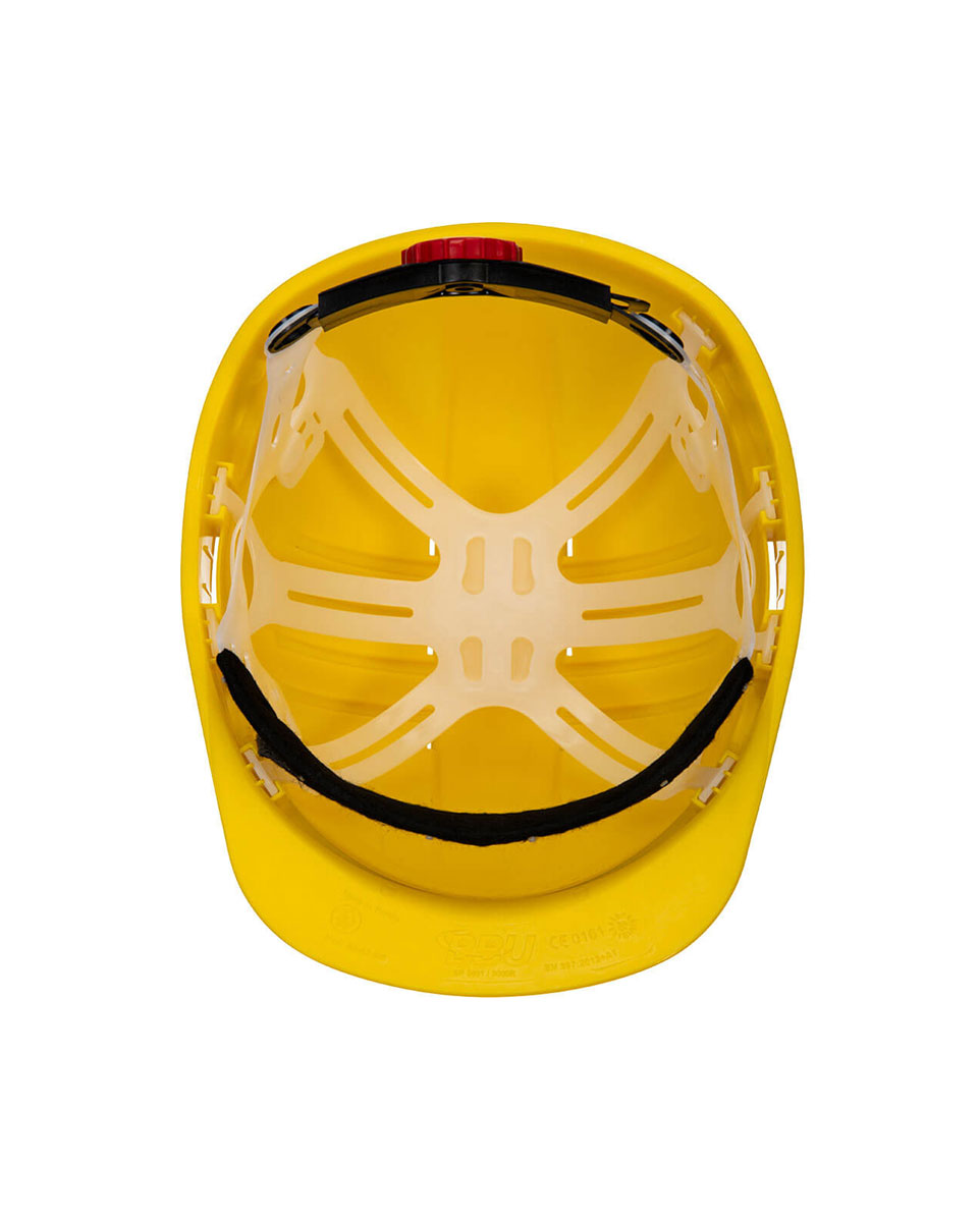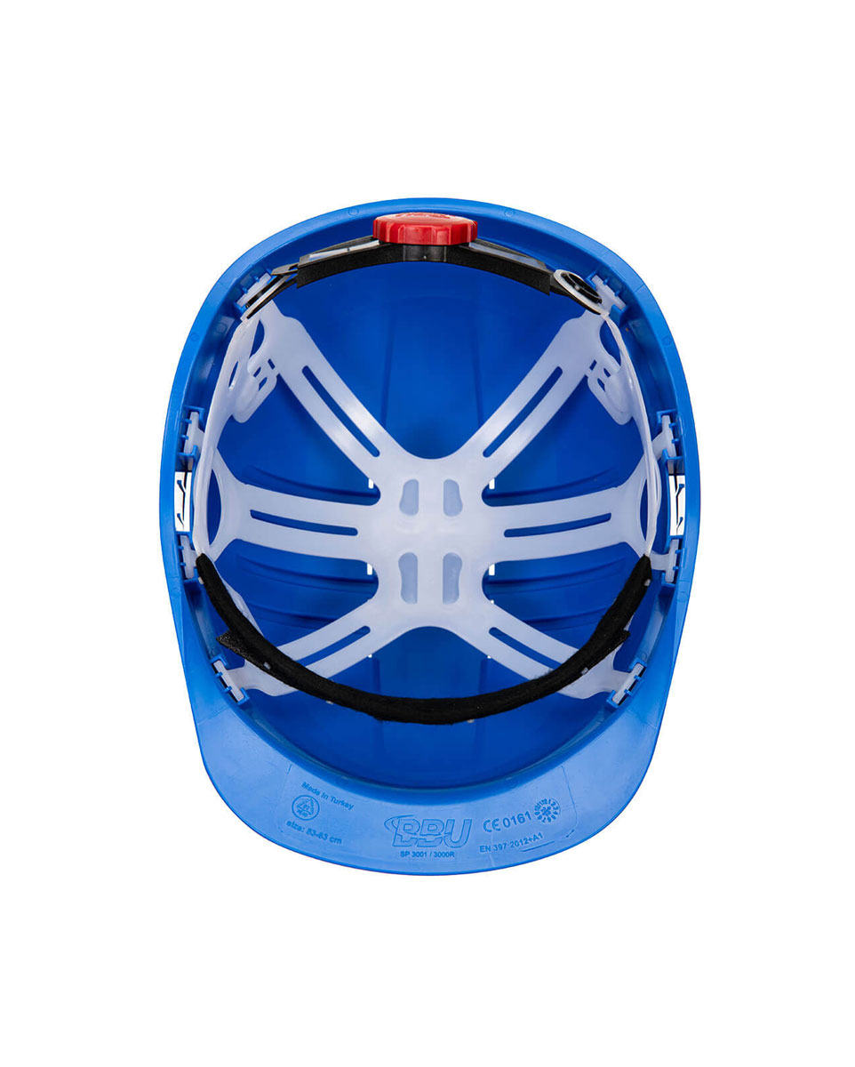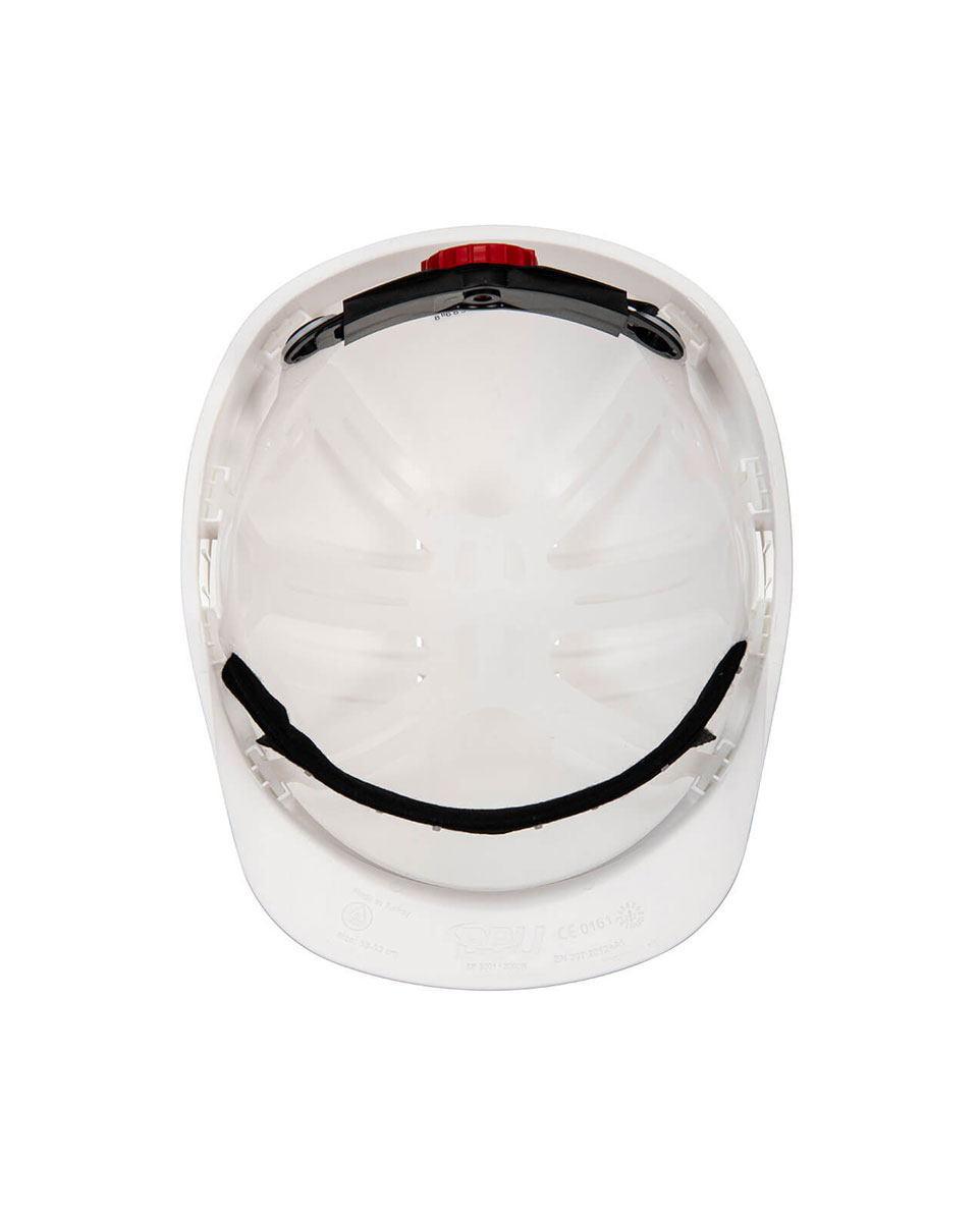 Ελαφρύ, αεριζόμενο κράνος ασφαλείας με πλαστική ανάρτηση 6 σημείων, προστασία αυχένα και ενσωματωμένη κορδέλα ιδρώτα.